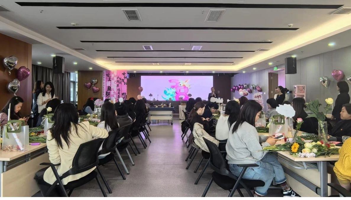 此次活动吸引了公司全体女职工的积极参与,现场氛围热烈,活动内容精彩纷呈。古筝老师以精湛技艺为大家呈上一场高水准的视听盛宴;茶艺师的精彩演绎,让大家于袅袅茶香中品味生活之美,体悟茶道文化的宁静与优雅;花艺师带来新中式插花教学,女职工们在悉心指导下,亲手打造出独具匠心的花艺作品。一时间,现场花香弥漫,一束束精美插花作品为大家的生活添上了一抹盎然春色。