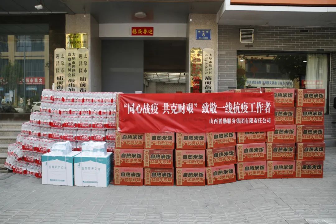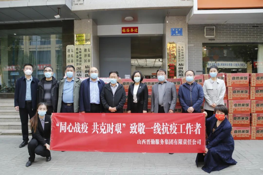 4月18日上午,晋勤集团前往庙前街道看望慰问在疫情防控攻坚战中日夜坚守、无私奉献的一线工作人员,向他们致以亲切的问候和崇高的敬意,并送去慰问物资自热米饭1800盒、矿泉水1800瓶、N95口罩2020个。省机关事务管理局毛益民局长、晋勤集团党委书记 董事长杨文治及集团所属相关单位负责人参加慰问活动。